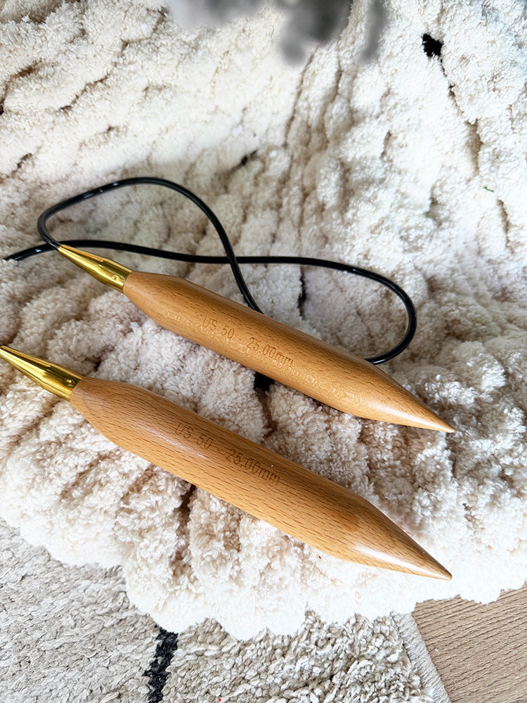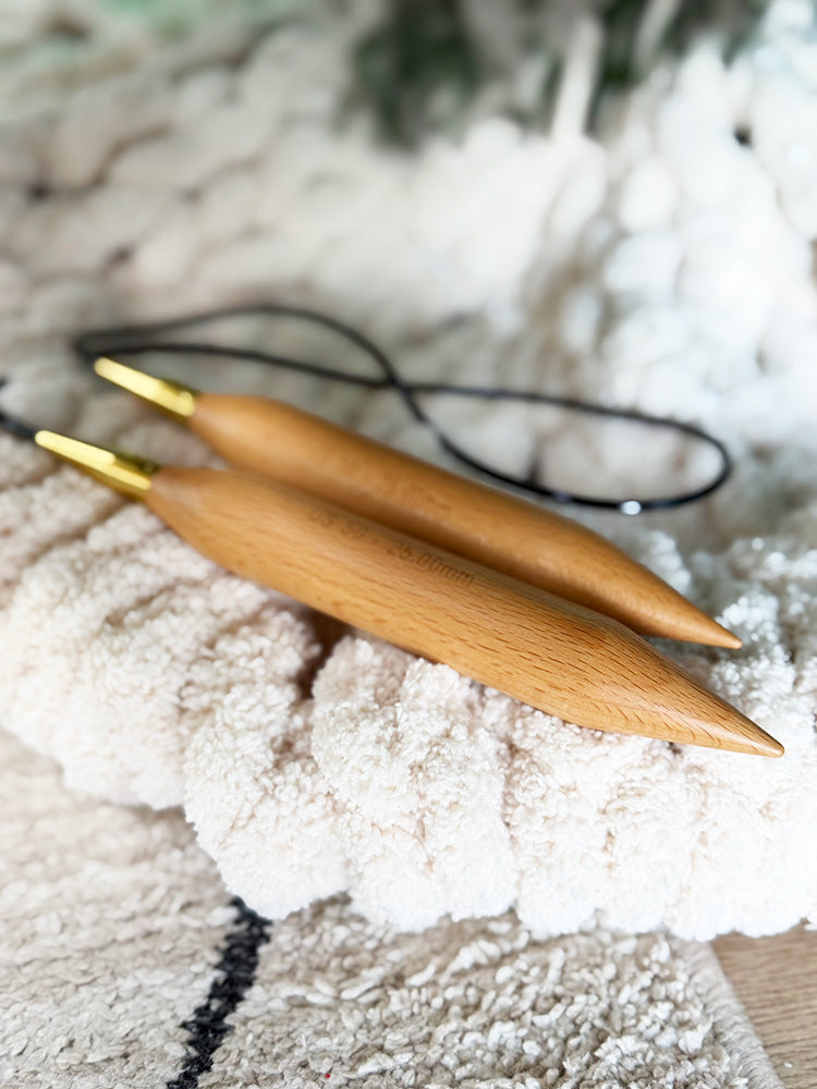 - Cord length: 32–40 in / 80–100 cm circular (or longer) to comfortably hold all stitches