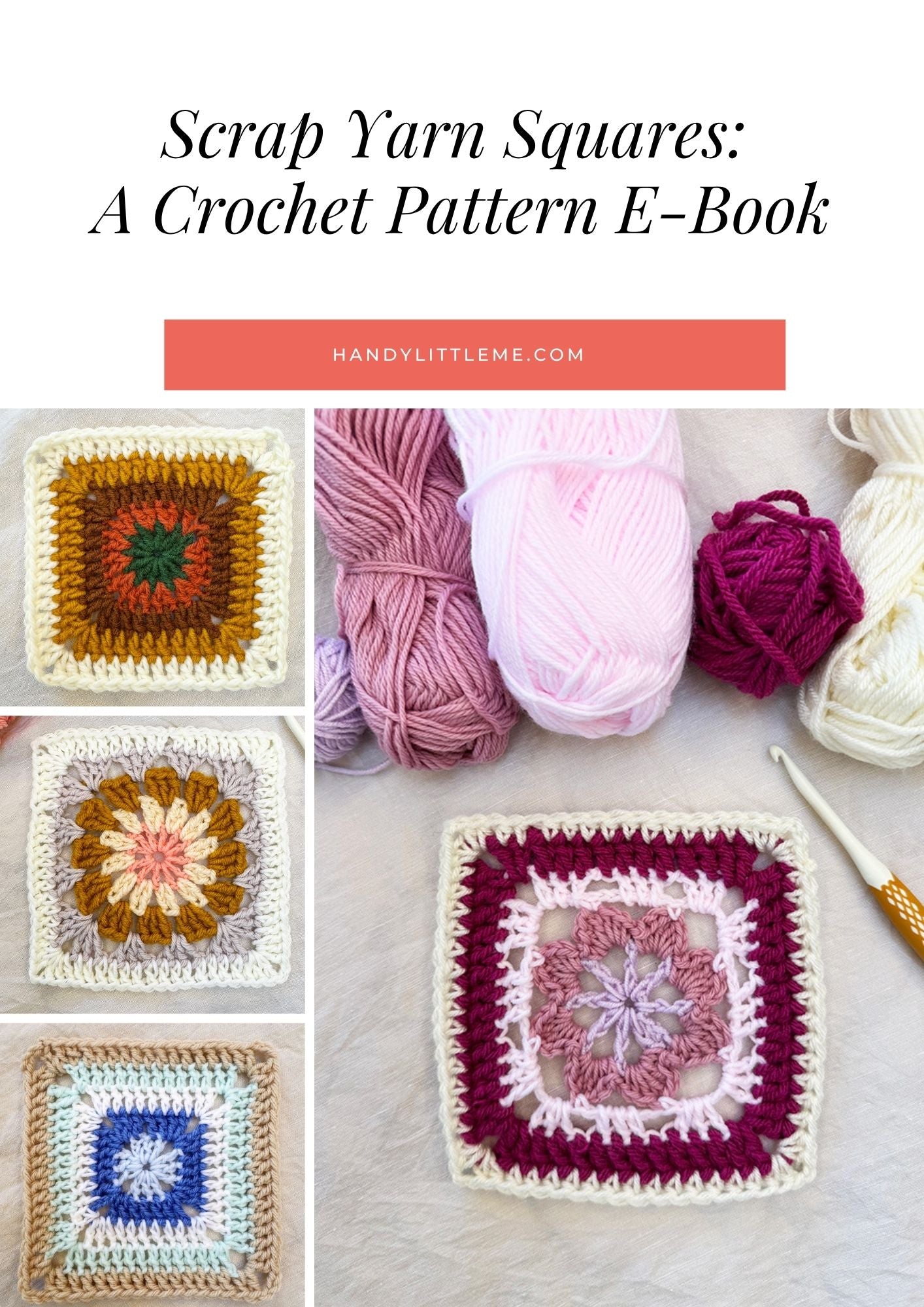 This beginner-focused crochet ebook featuring 6 unique granny square patterns designed to make the most of your leftover yarn.